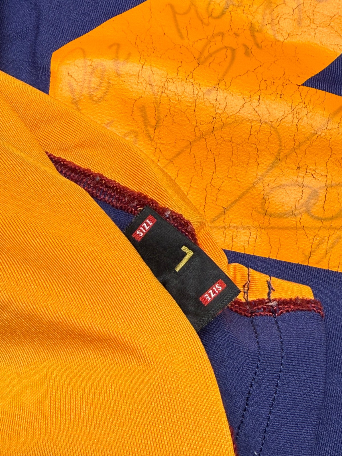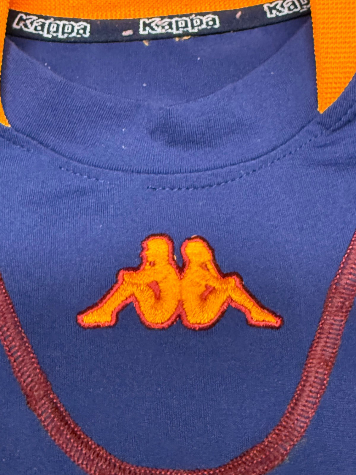 Rara e splendida maglia prodotta da Kappa per AS ROMA in vista della stagione 2001 2002. Maglia con scudetto celebrativo il trionfo del campionato 2000/01 vinto dai giallorossi. Maglia third blu a maniche lunghe, impreziosita dalla personalizzazione di Cafu sul retro, con un autografo probabilmente di Taddei 11. Sponsor Ina Assitalia applicato frontalmente in condizioni come da foto. Logo societario cucito, logo kappa ricamato.