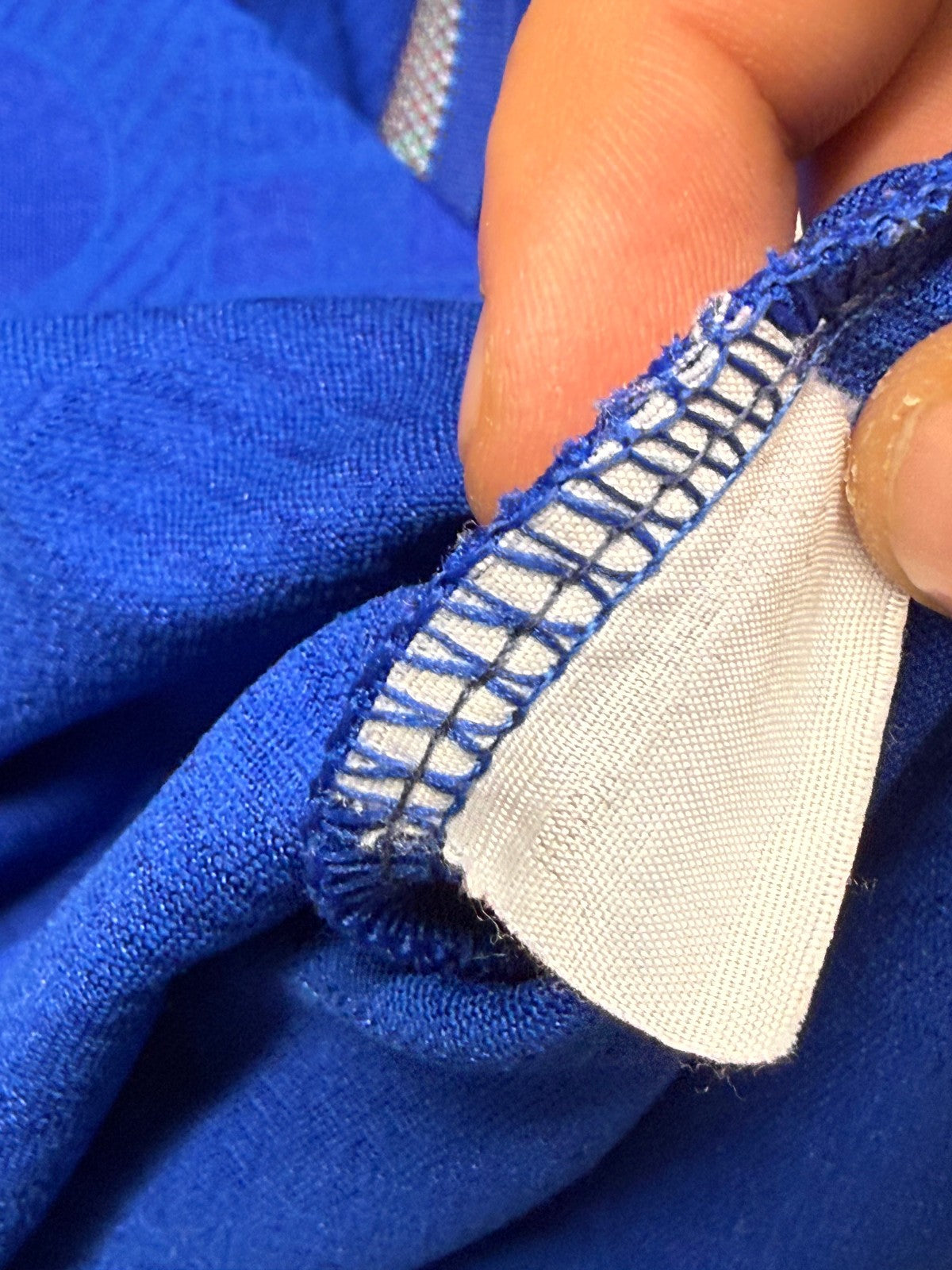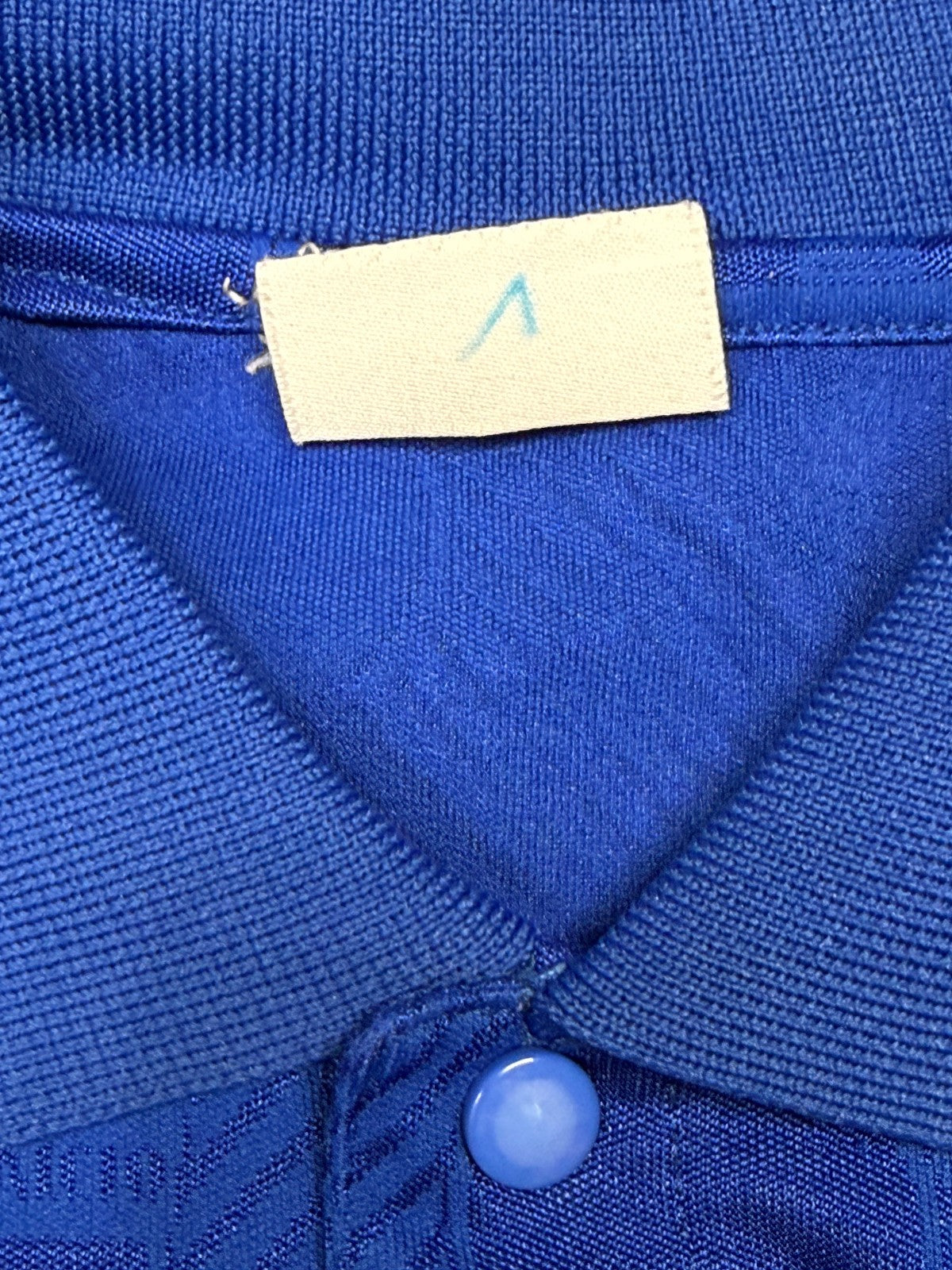 Discrete condizioni, la maglia presenta frontalmente una toppa blu applicata sul tessuto.