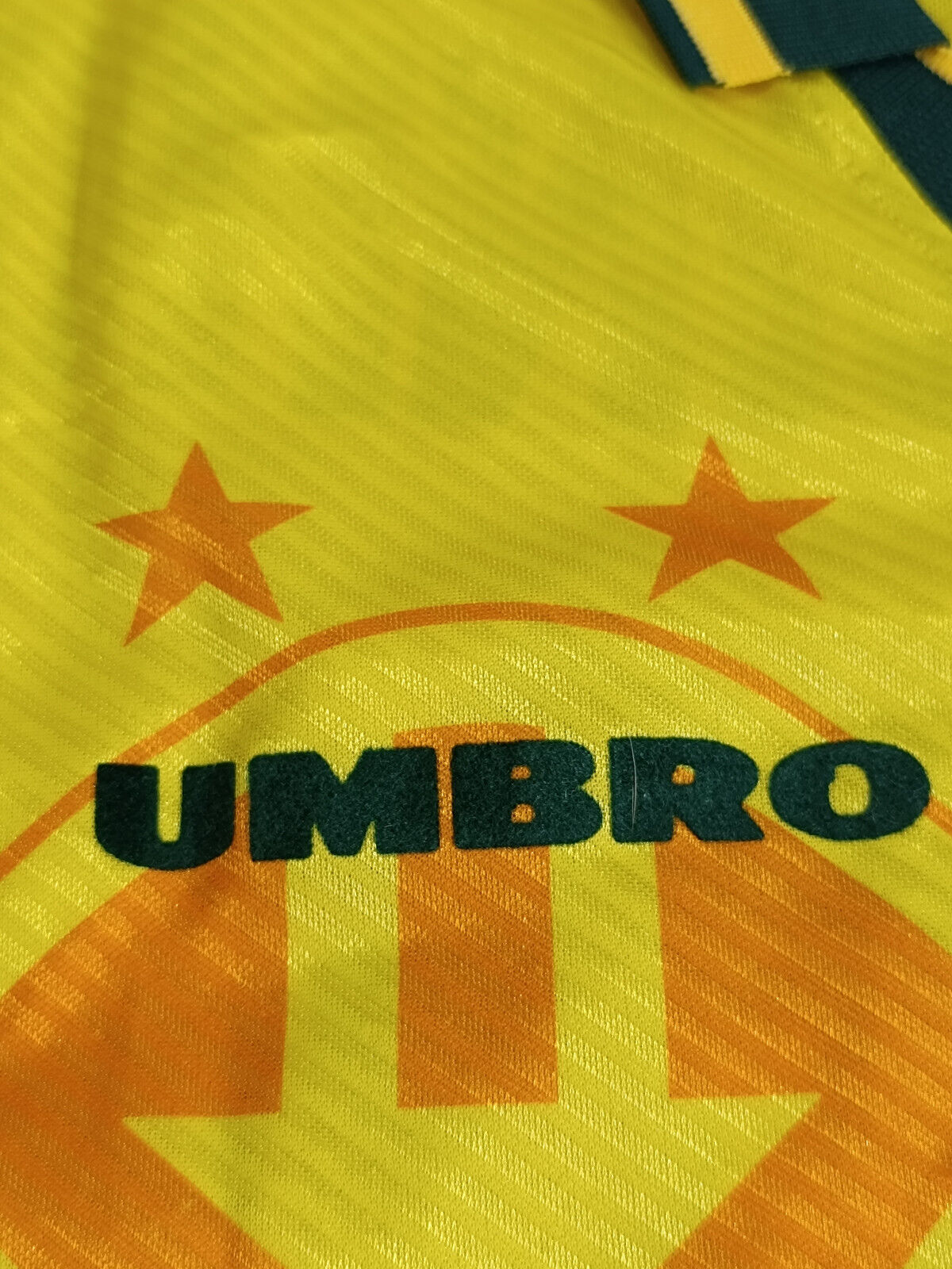 Maglia in ottime condizioni considerata l'età, presenta un difetto doveroso da segnalare frontalmente, in fondo alla maglia , ovvero un piccolo rammendo. Taglia al collo tagliata, lo si può evincere dall'etichetta rimasta sotto quella blu della umbro. Equivale ad una L